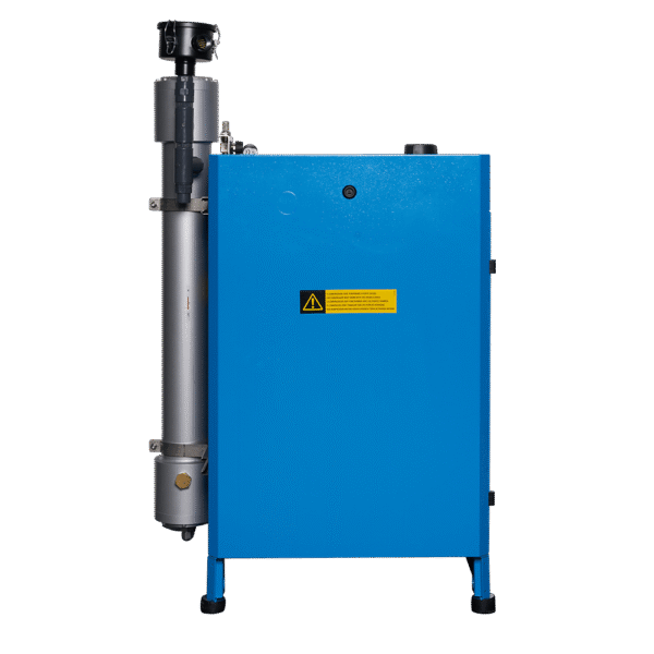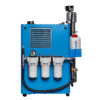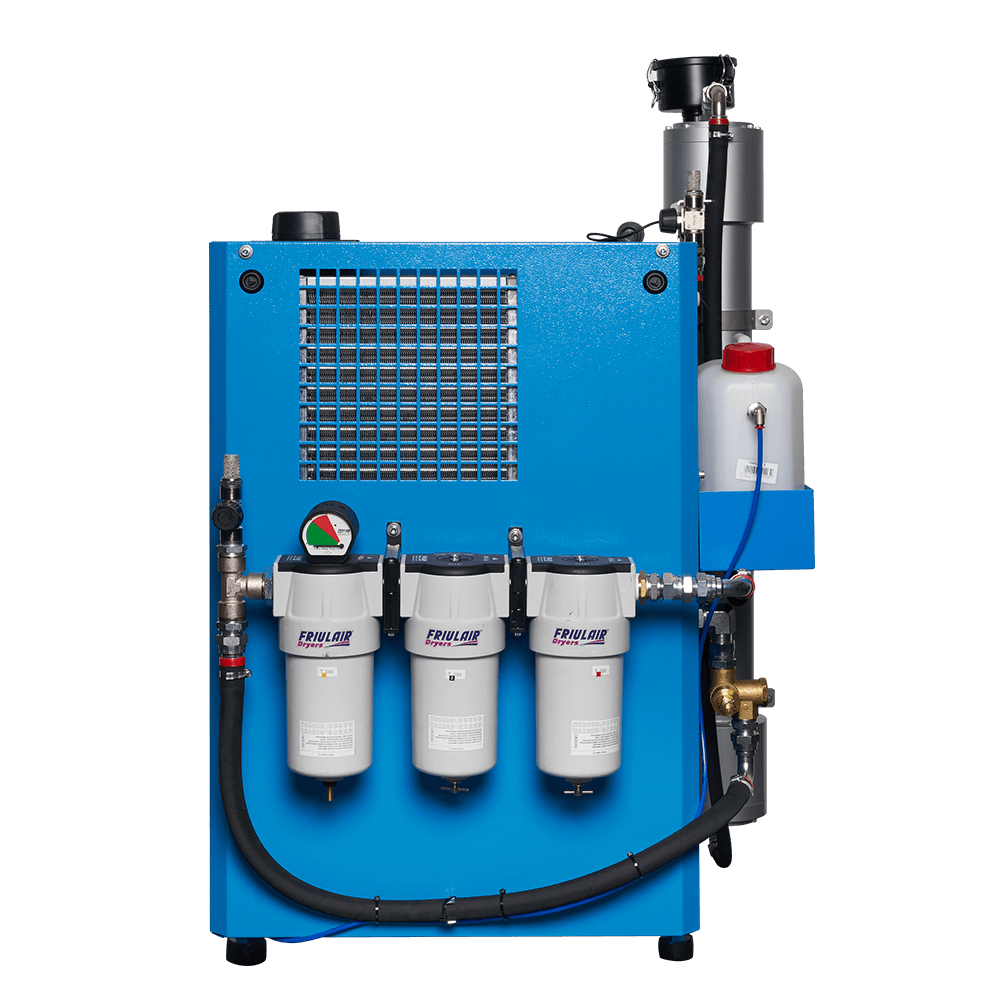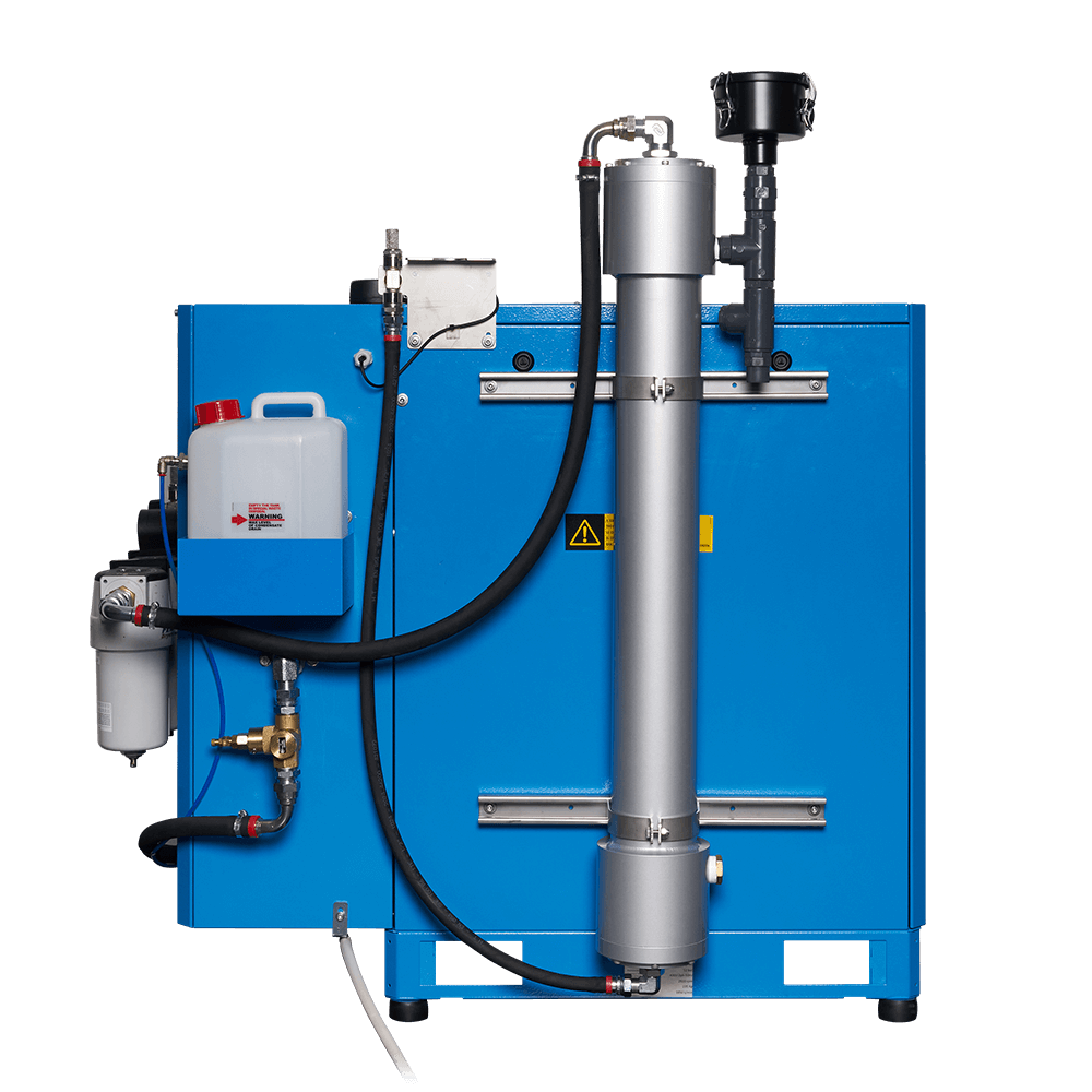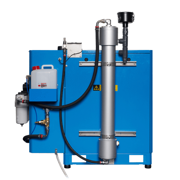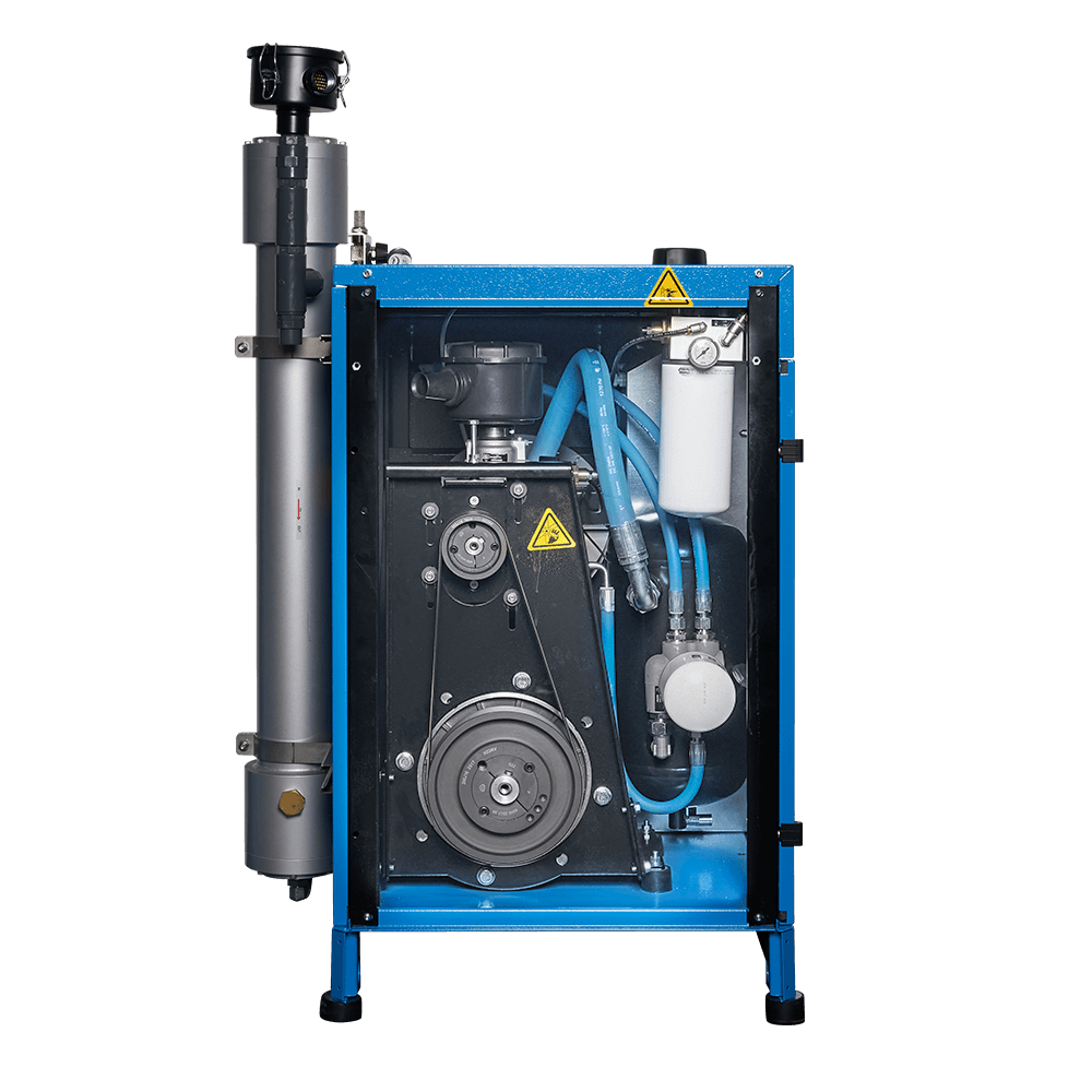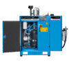 Industrial screw compressor that delivers air at a pressure of 10 bar to an OXYSEP 7-15-40 OXYGEN membrane that separates nitrogen and oxygen up to a maximum of 40 percent oxygen.
