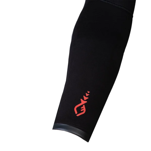 The wetsuit features snap-clip tail closure, sternal pad, elbows and knees protection.