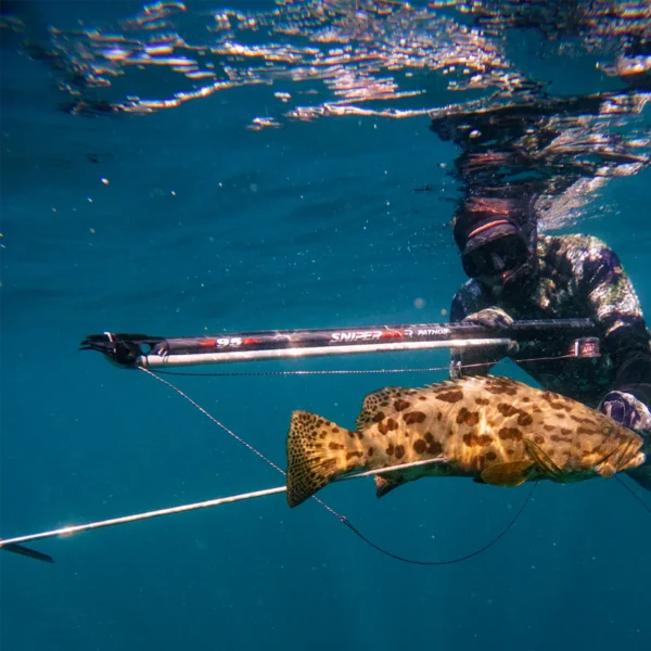 The newly designed Aluminum Oval barrel with enclosed track combined with the floater offers stability, maneuverability and stiffness. Sniper roller muzzle and sniper handle remain for the best speargun holding & aiming.