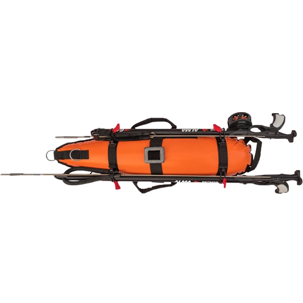 It has the ability to keep 2 spearguns with special elastic bands, and it can carry one or more leads, not only to keep its balance, but also to give the diver the chance to change his buoyancy on open sea (especially for divers who start from shore).